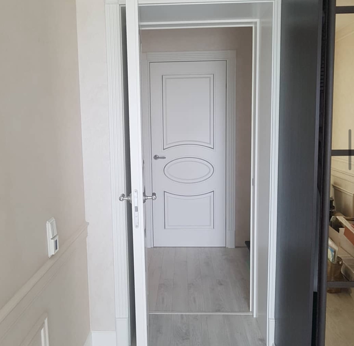Неоклассика основывается на традициях, которые интерпретированы в современный дизайн, при этом роскошь и элегантность классического стиля будут присутствовать в каждой детали интерьера. Коллекция Leda предлагает полотна с классическими филенкам. Полотно выполнено в современной технике фрезерования. Такой метод позволяет создавать объемные формы на цельной монолитной плоскости полотна.