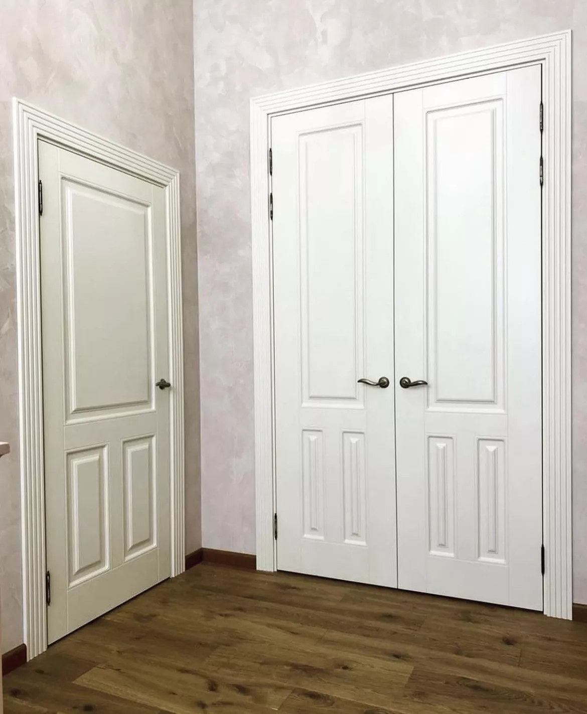 пантографирования, с правильными пропорциями. Два вертикальных руста подчеркивают их красоту. Для полотен под стекло предлагаются различные варианты стекол. Стекла устанавливаются с помощью фигурного штапика. Доступна модель с «английской решеткой». Различные варианты окрашивания делают двери важным элементом в интерьере, а при желании – акцентом.