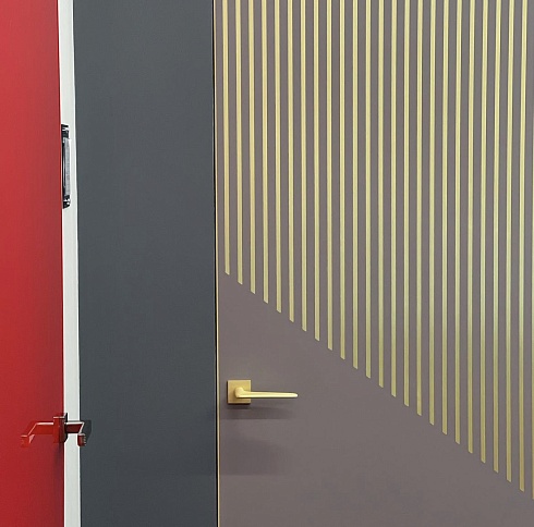 Двери комплектуются скрытыми, регулируемыми в трех плоскостях и с открыванием до 180°(зависит от способа монтажа) петлями и бесшумными магнитными замками с пластиковым язычком итальянского производства. Доступны к заказу раздвижные двери и стеновые панели в цвет дверей.