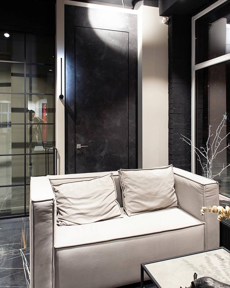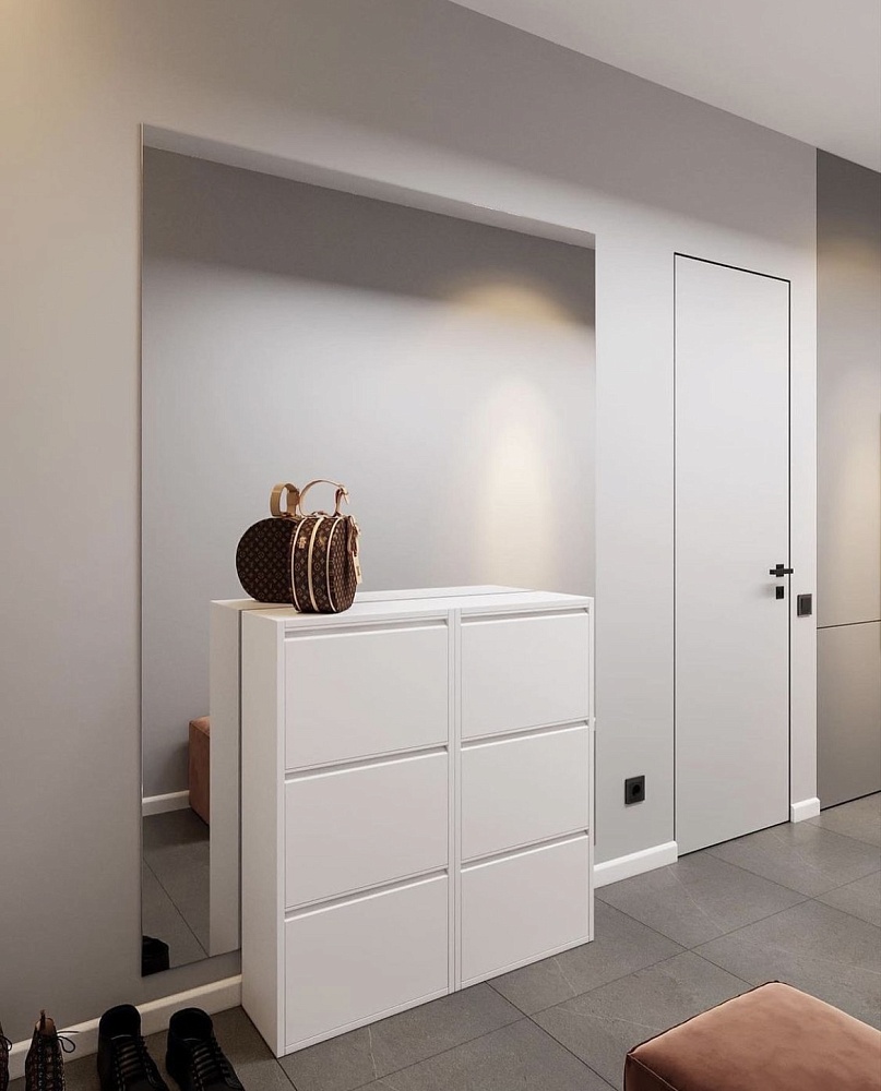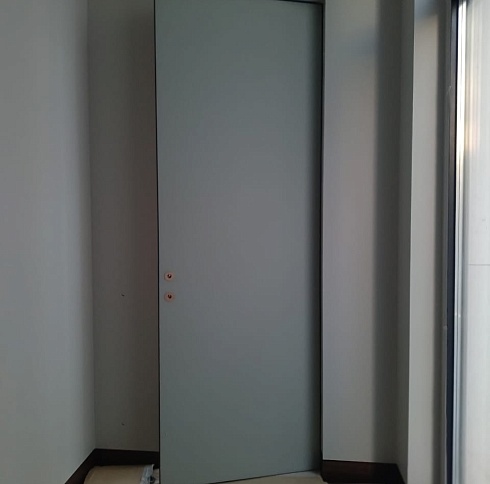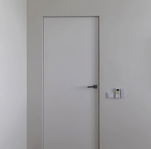 Дверь, которая растворится в дизайнерском пространстве. Универсальное решение - гладкое полотно со срытым коробом, обработанное белым грунтом.