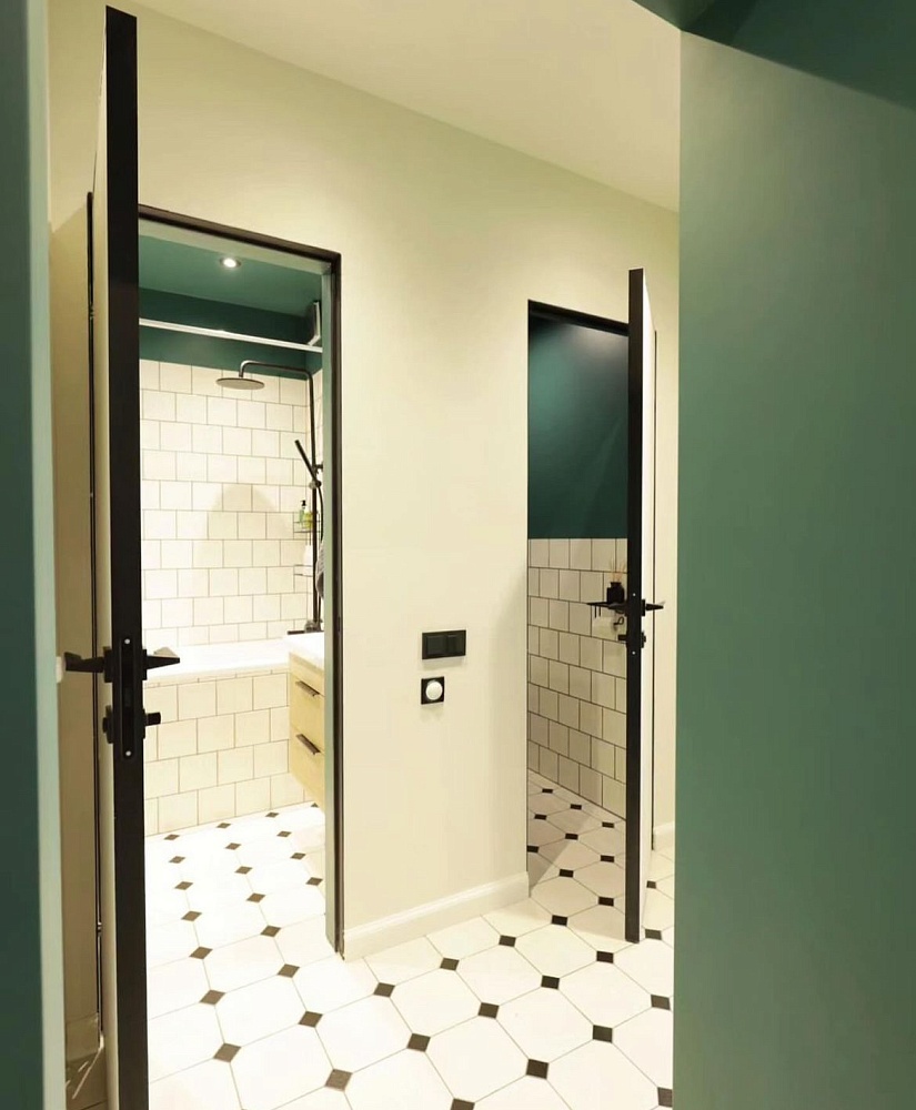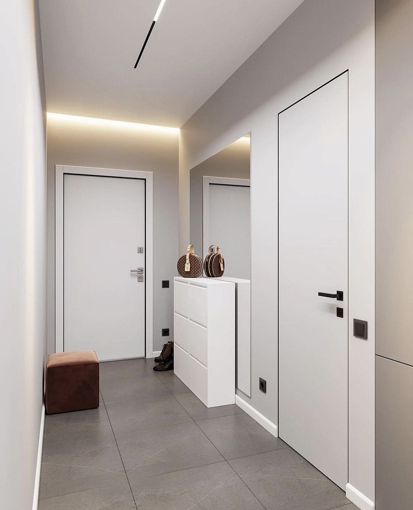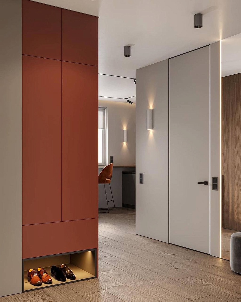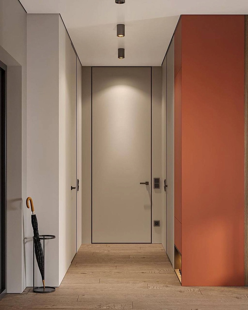 - когда в проекте много дверей, полезно часть из них сделать "невидимыми" - это делает интерьер визуально более "легким", чистым, лаконичным